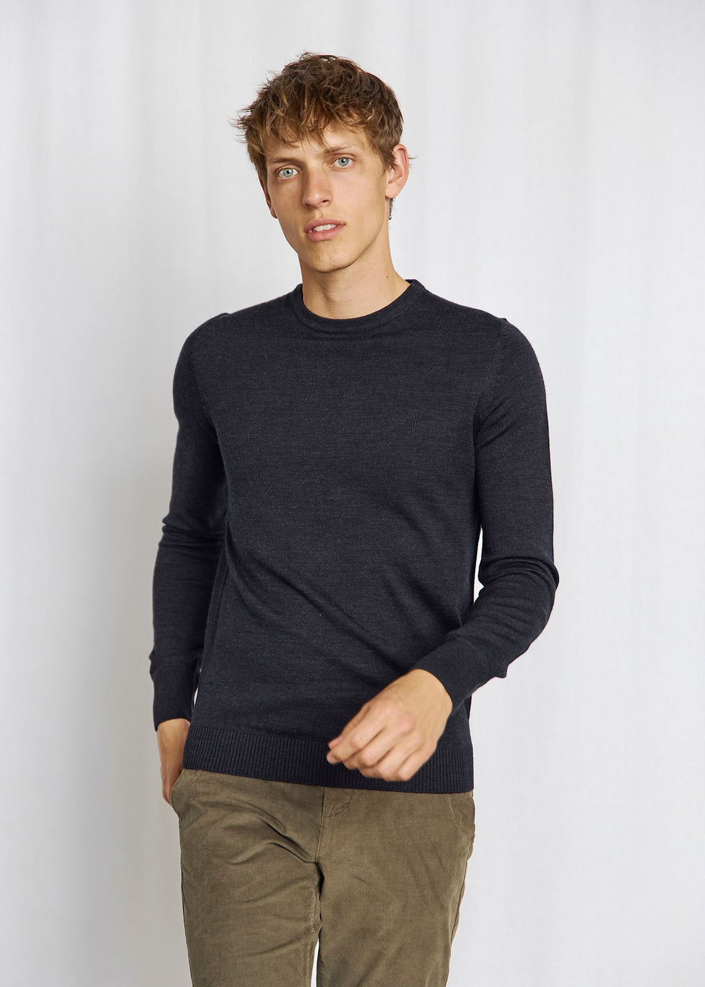 Vores bedst­sælgende O-hals strik til mænd – en tidløs klassiker, der vender tilbage sæson efter sæson. Strikket i en blød blanding af ekstrafin merinould og akryl. Detaljer som tone-i-tone logolabel på brystet og kontrastpiping i kraven giver et raffineret udtryk. Nem at style med en skjorte under eller alene.