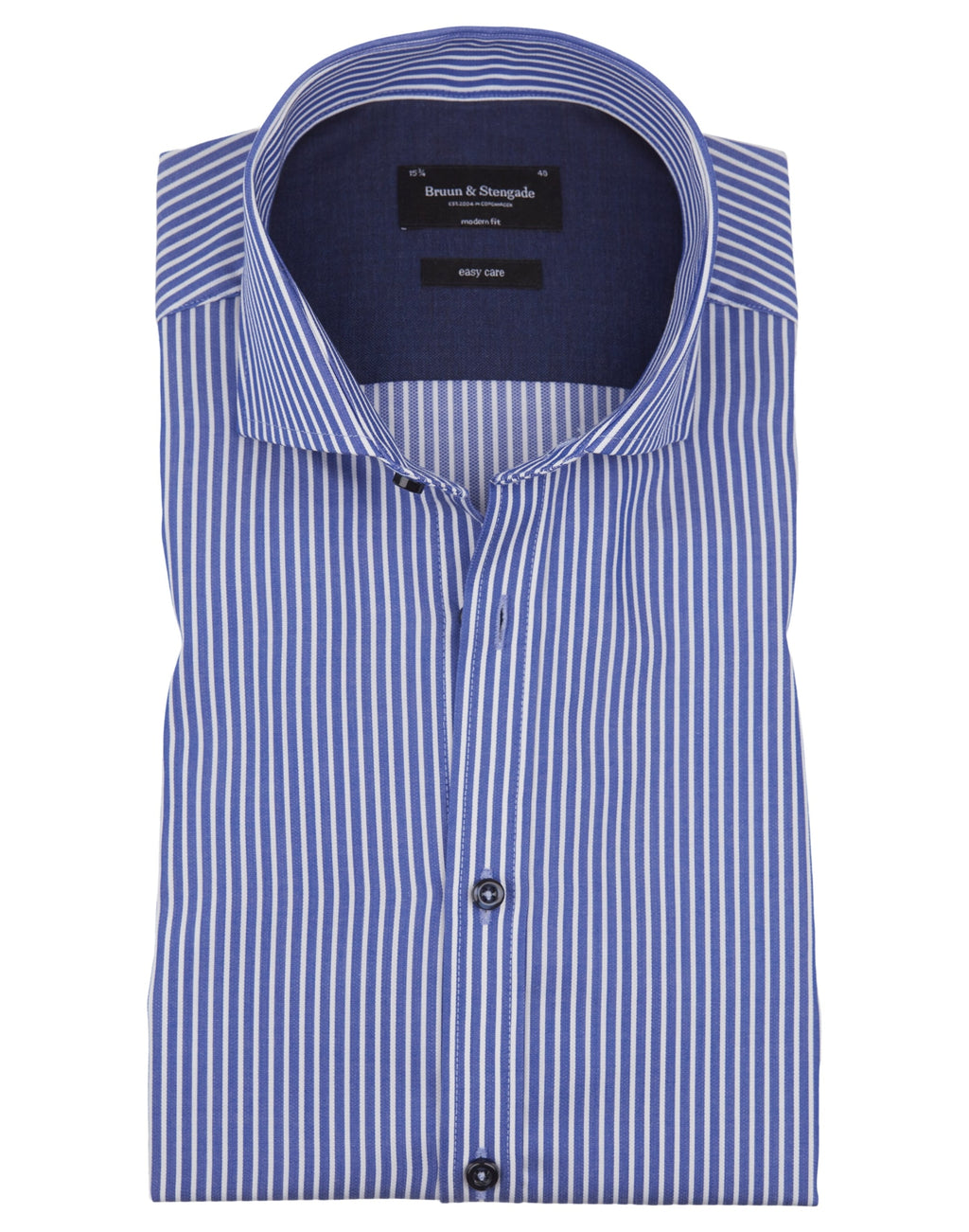 Vores Modern Fit skjorte er den perfekte skjorte til manden som foretrækker et fit med vidde. Alle vores formelle skjorter er vævet af 100% bomuld, behandlet med Easy Care, som gør skjorten strygelet. Cutaway krave, ærmer med manchet og knaplukning foran.