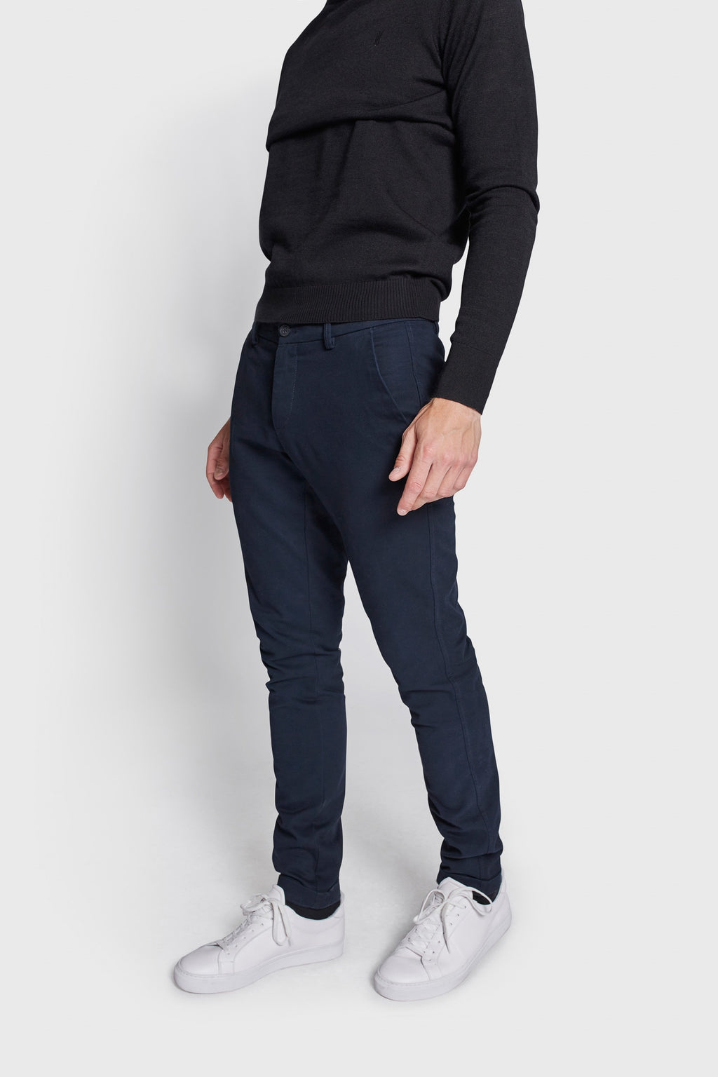 Vores Lance chinos er lavet i cotton twil med stretch for komfort. De har en slank pasform, og giver et slim fit udseende omkring lår og ankler. De har sidelommer foran og dobbelt pasning bagpå. Flyv består af lynlås og knap.