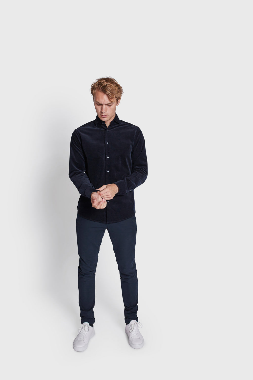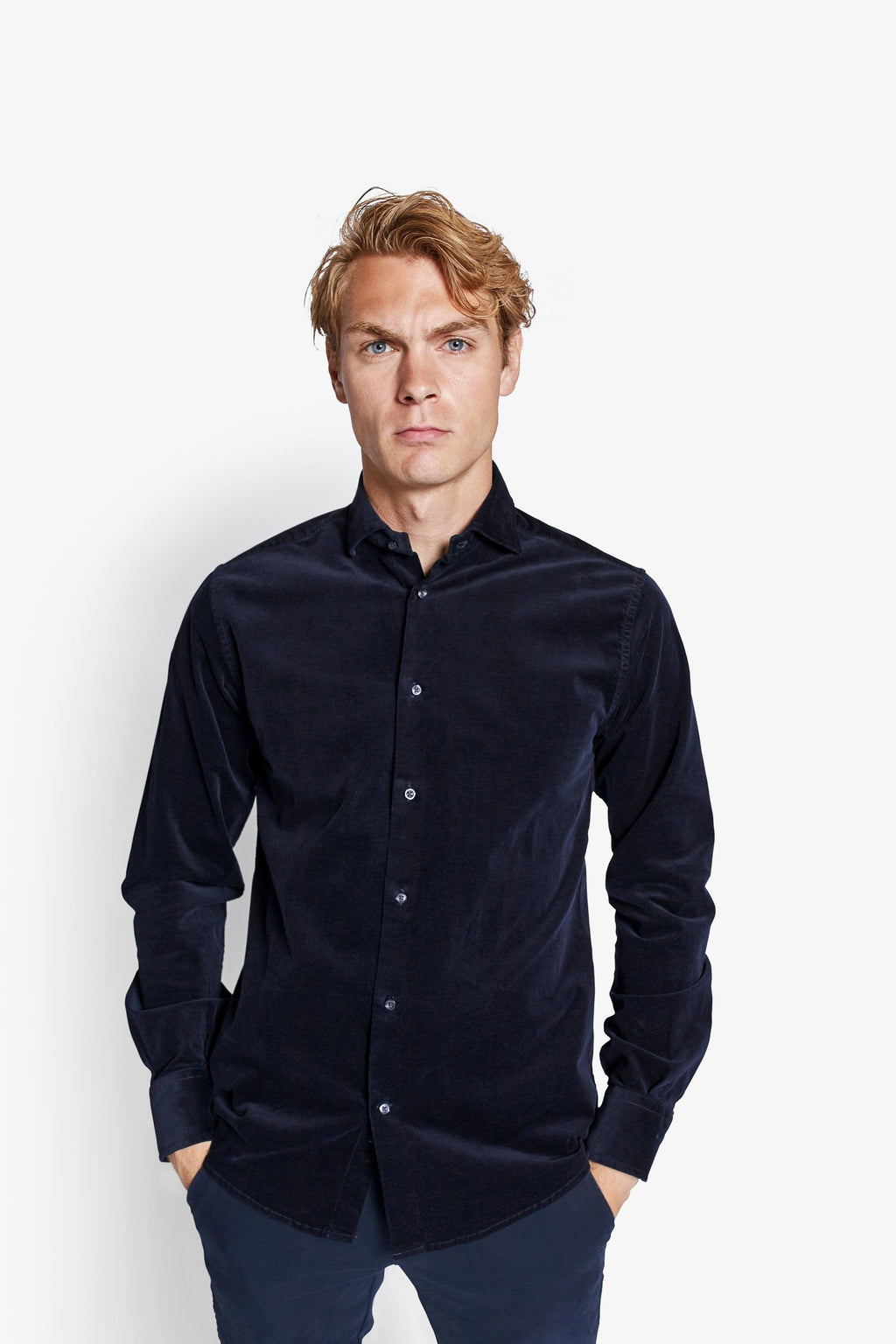 Vores Casual Slim Fit skjorte er perfekt til manden, der foretrækker en overall fitted skjorte, med en smule bredde til et afslappet look. Assan er lavet med et jernbanefløjls look i bomuld. Hvis du er mere til modern fit, kan du finde den under Jallow.
