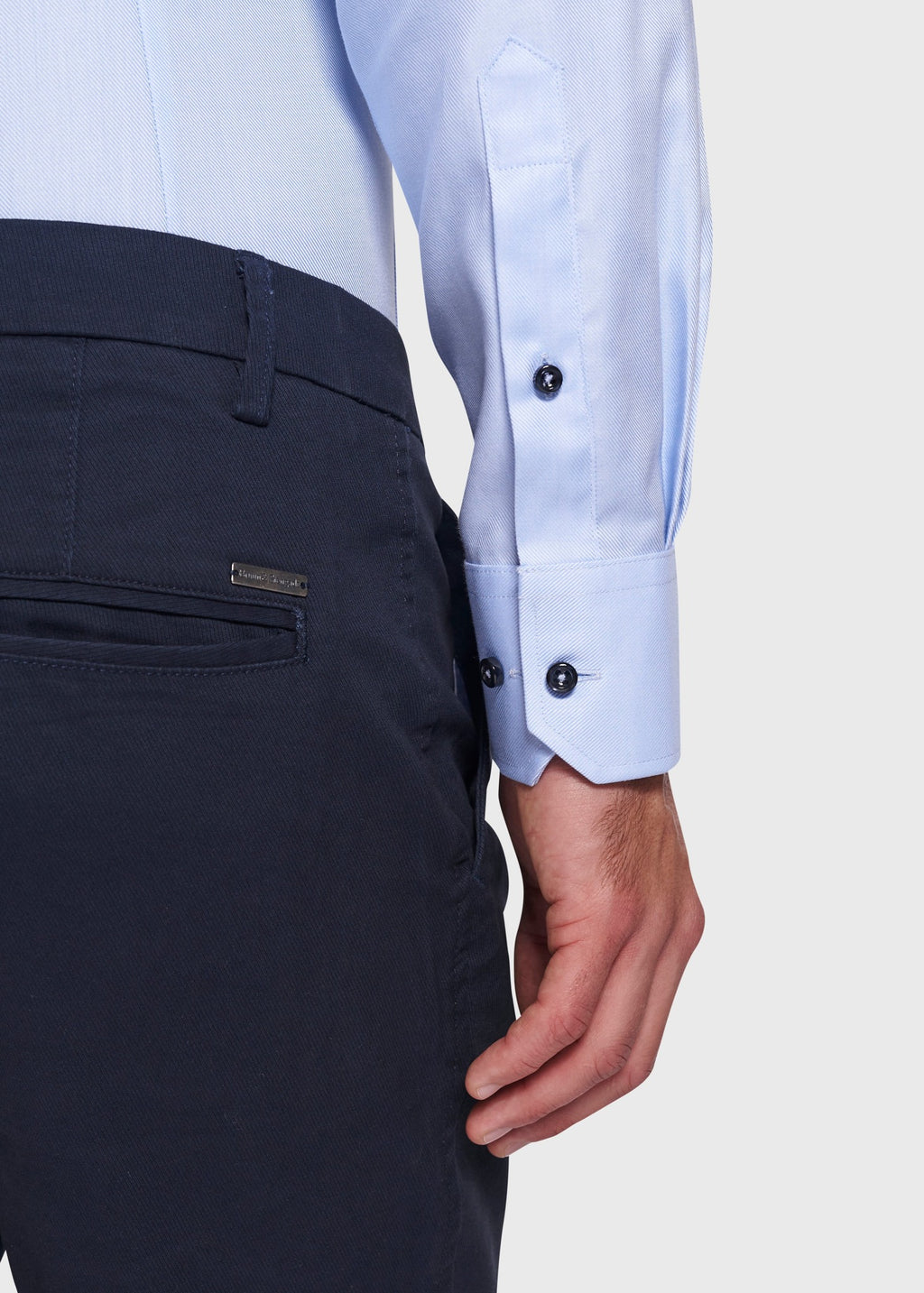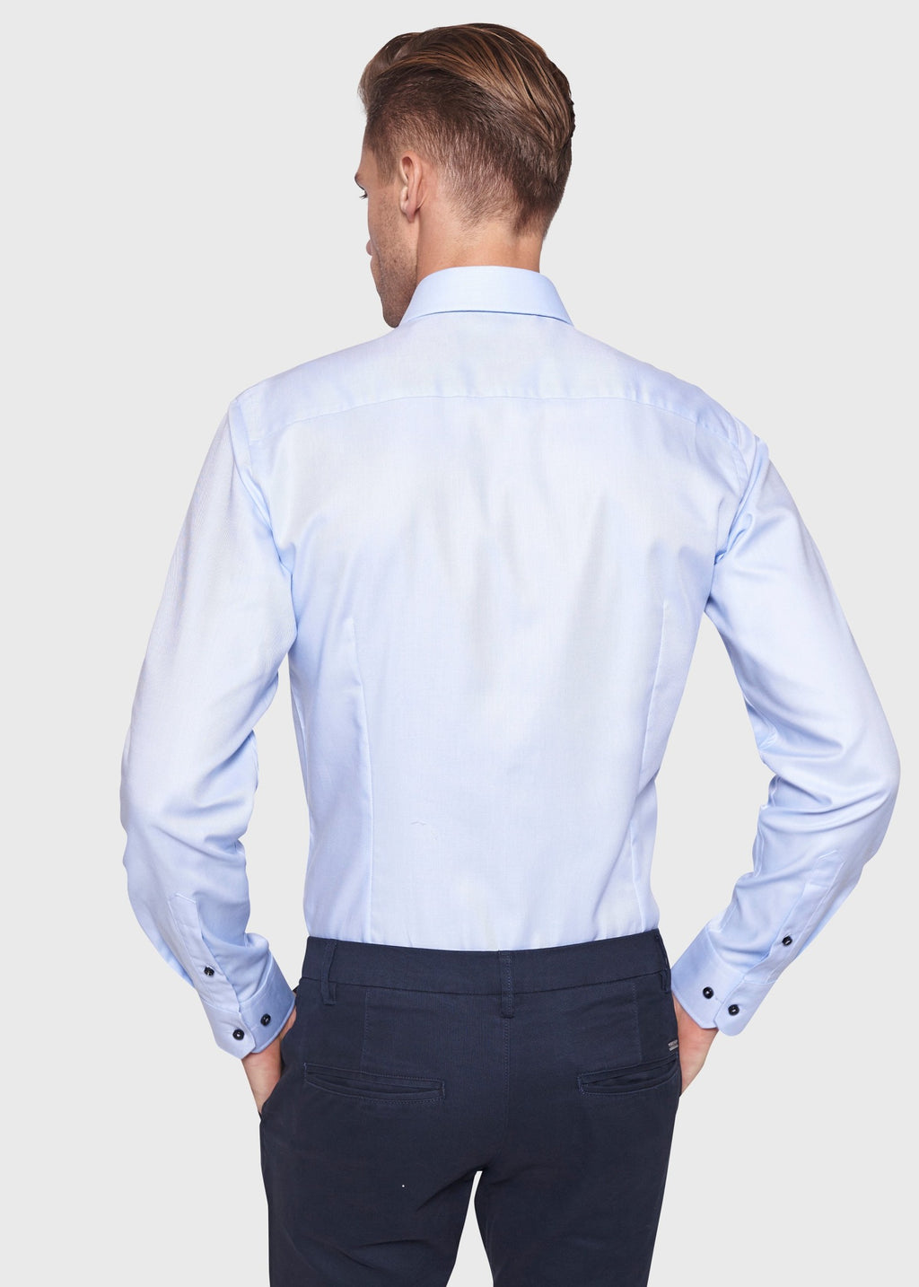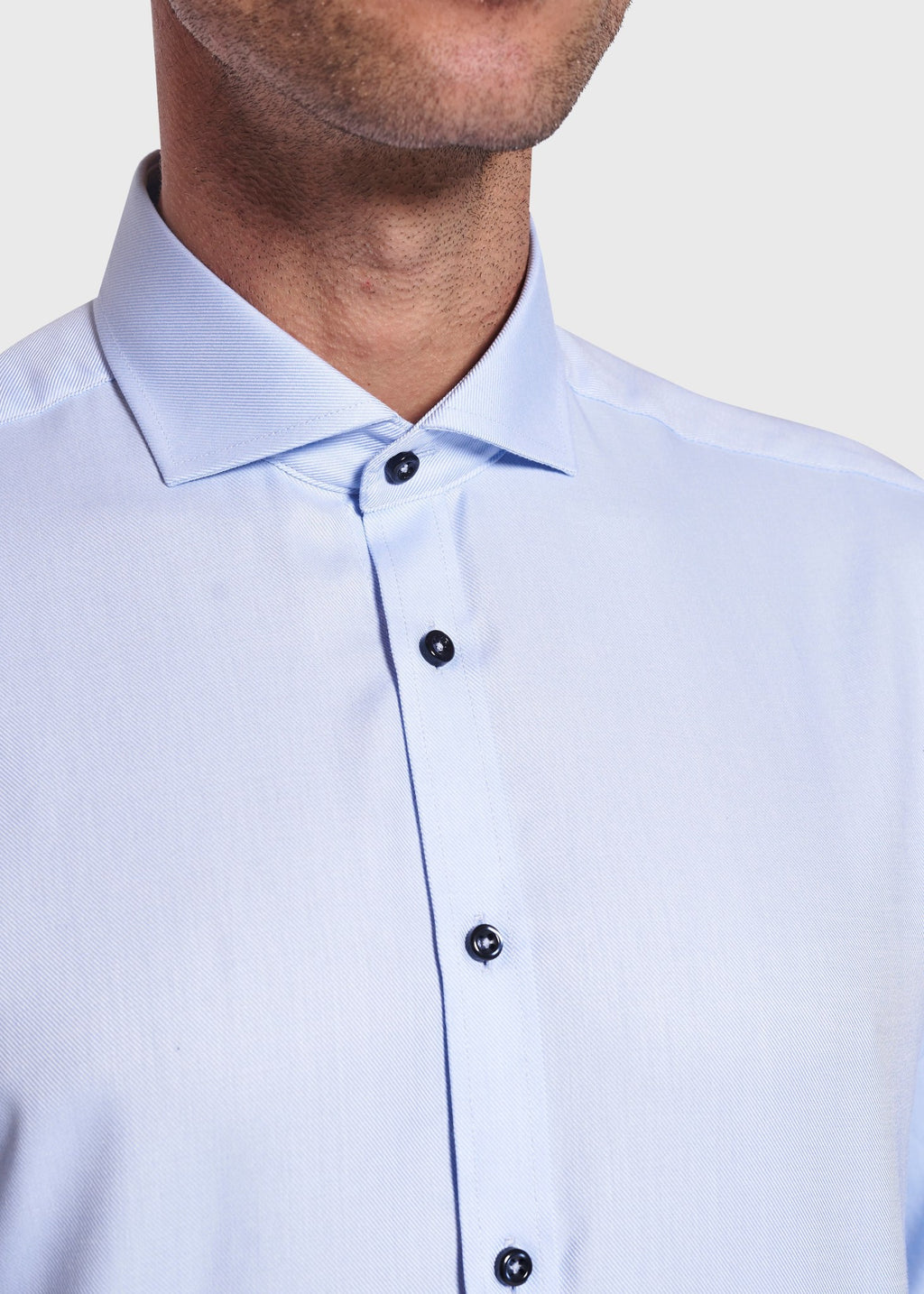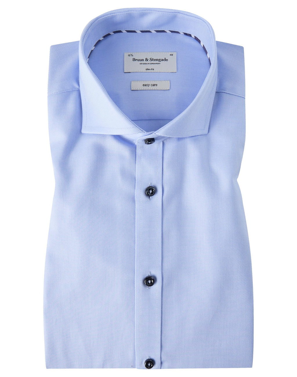 Vores Slim Fit skjorte er den perfekte skjorte til manden som foretrækker et tætsiddende fit som fremhæver figuren. Alle vores formelle skjorter er vævet af 100% bomuld, behandlet med Easy Care, som gør skjorten strygelet. Struktureret skjorte med cutaway krave, ærmer med manchet og knaplukning foran.