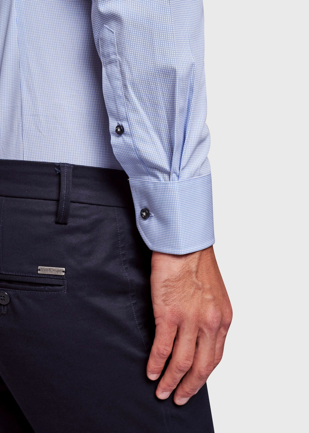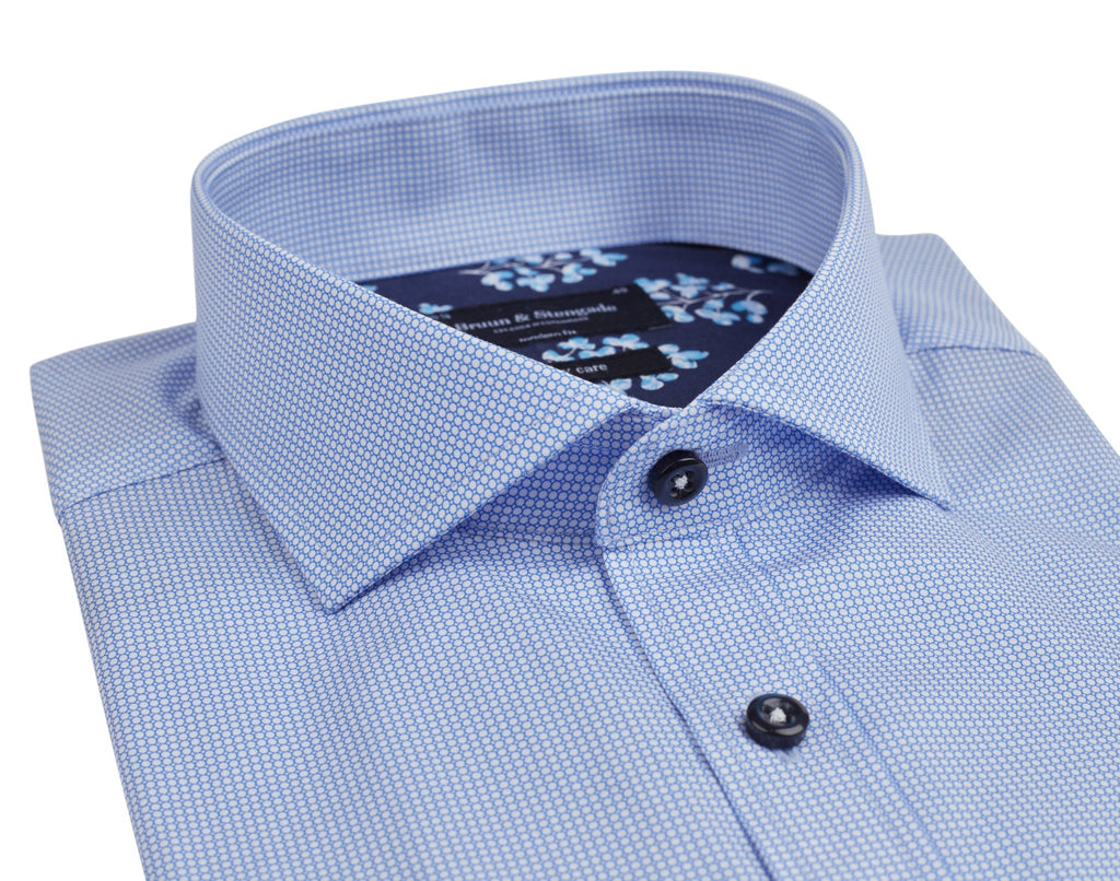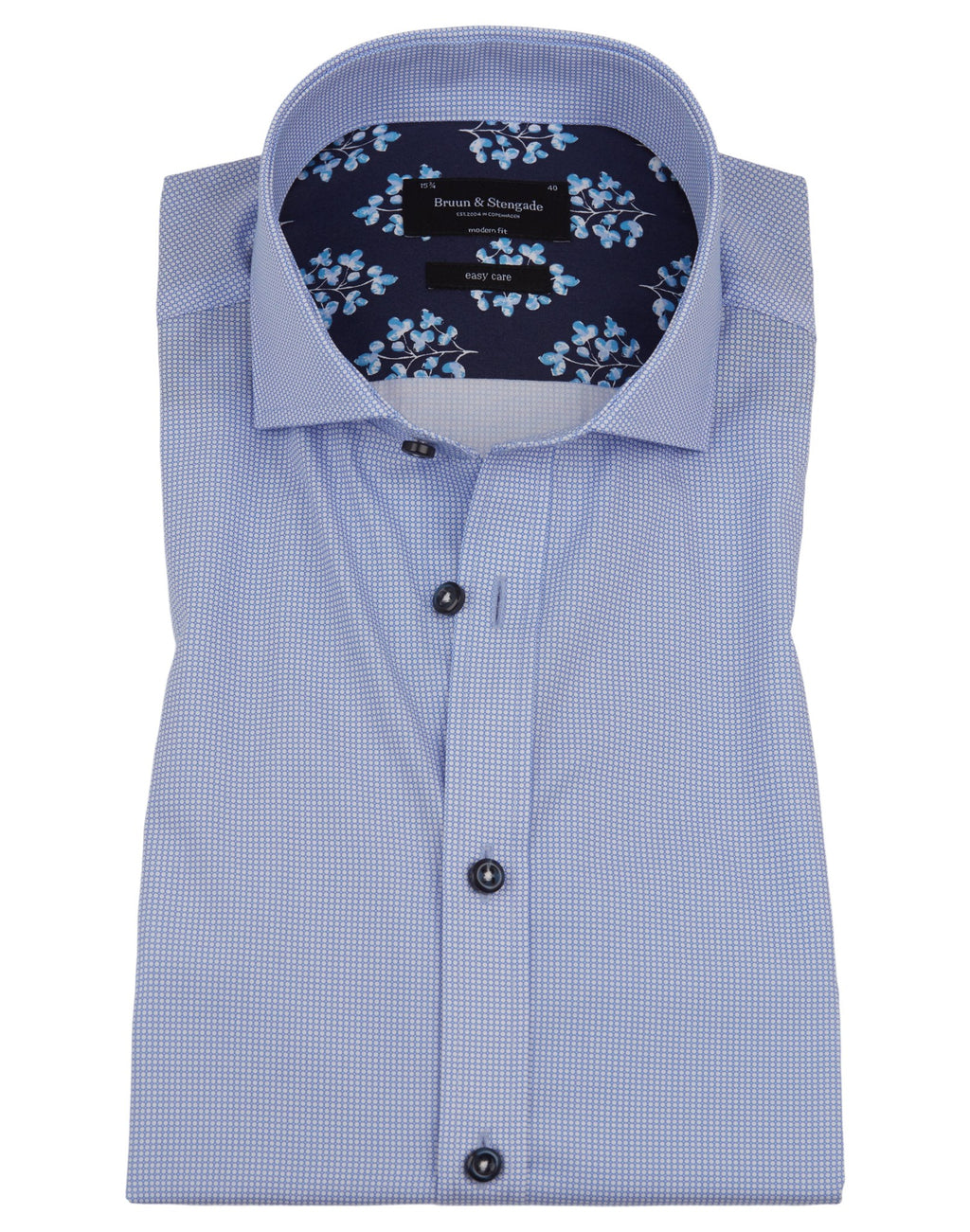 Vores Modern Fit skjorte er den perfekte skjorte til manden som foretrækker et fit med vidde. Alle vores formelle skjorter er vævet af 100% bomuld, behandlet med Easy Care, som gør skjorten strygelet. Cutaway krave, ærmer med manchet og knaplukning foran.