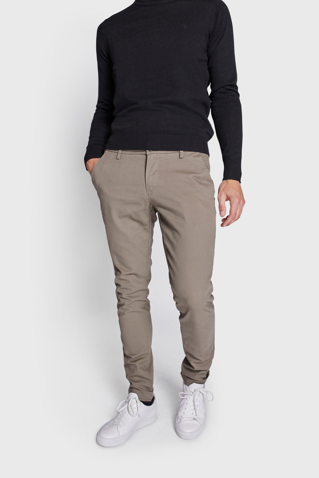 Vores Lance chinos er lavet i cotton twil med stretch for komfort. De har en slank pasform, og giver et slim fit udseende omkring lår og ankler. De har sidelommer foran og dobbelt pasning bagpå. Flyv består af lynlås og knap.
