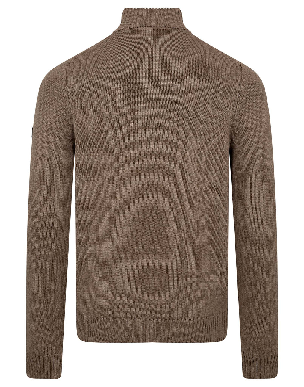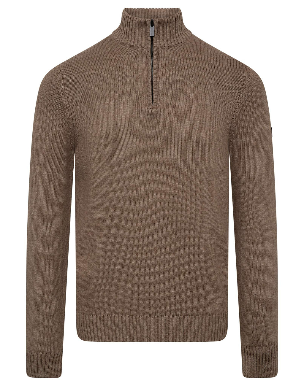 Kraftigstrikket half-zip sweater i en blød bomulds- og tencelblanding. En afslappet klassiker til mænd med høj krave og diskret gummilogo på ærmet.