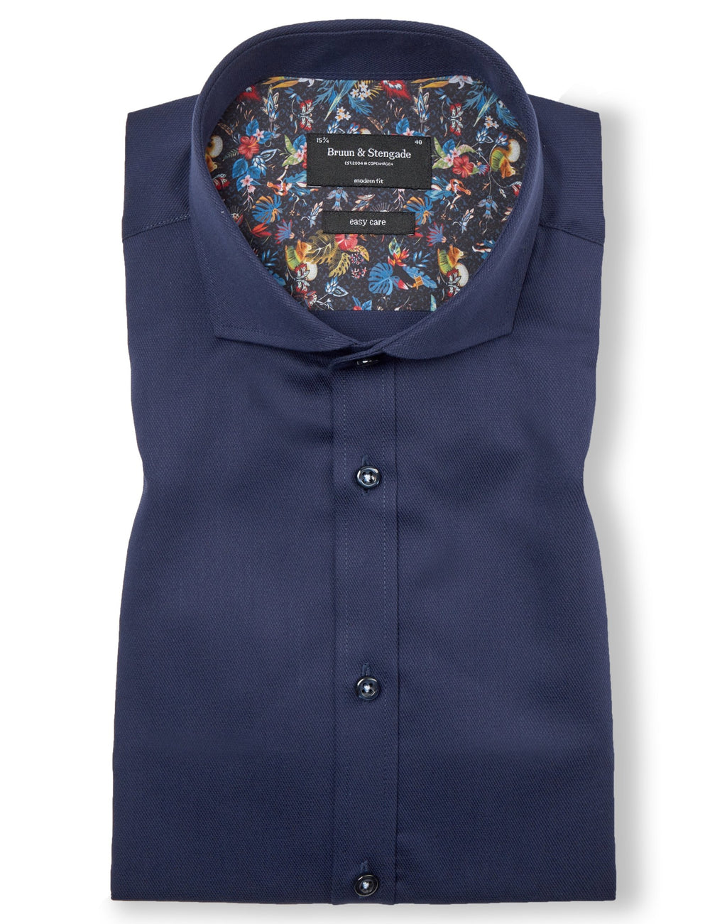 Vores Modern Fit skjorte er den perfekte skjorte til manden som foretrækker et fit med vidde. Alle vores formelle skjorter er vævet af 100% bomuld, behandlet med Easy Care, som gør skjorten strygelet. Cutaway krave, ærmer med manchet og knaplukning foran.
