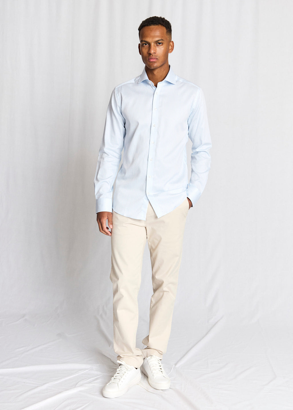 BS Borko Slim Fit Skjorte - Light Blue/White