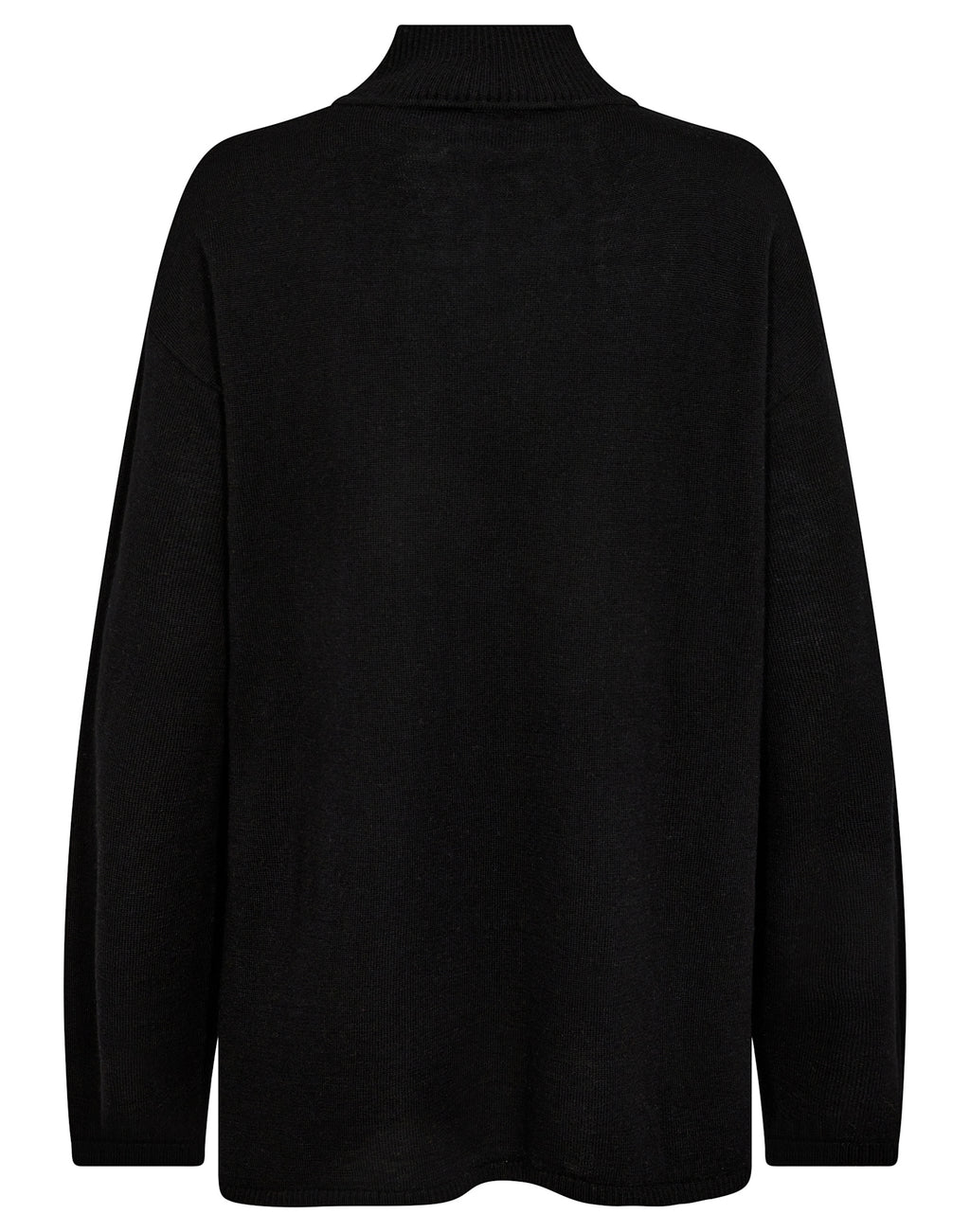 Finstrikket oversized sweater i en blanding af ekstrafin merinould og tencel. Designet med høj ribbet krave, brede ærmer og lange slidser i siden, som giver et let og moderne udtryk. Style med vores BS Ines bukser for et afslappet og elegant look.