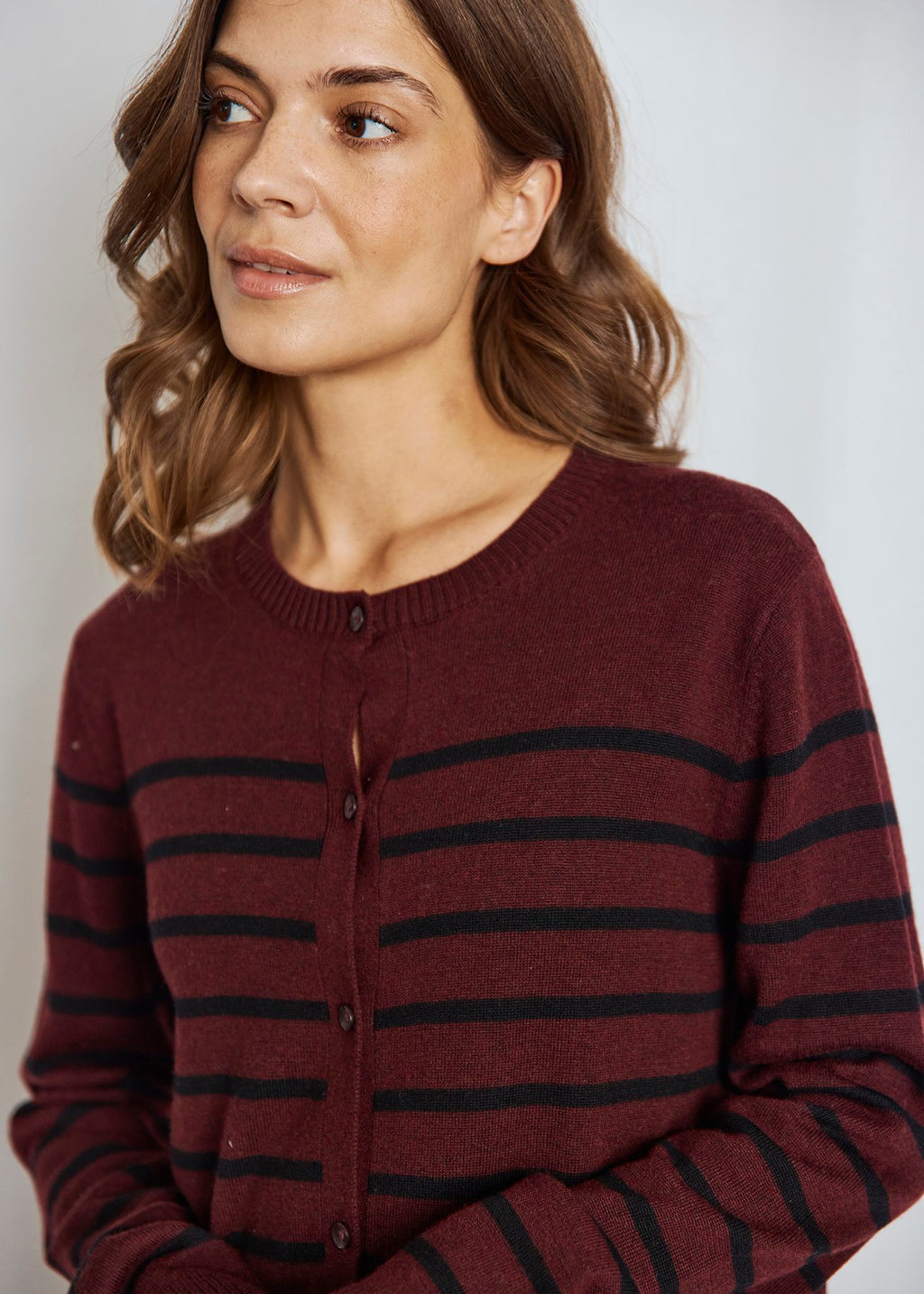 Klassisk cardigan i finstrik med ekstrafin merinould og tencel. Designet med ribstrikket krave, manchetter og søm for et raffineret finish. Lukkes med diskrete tone-i-tone knapper. Et tidløst og komfortabelt lag til enhver garderobe, som man kan bruge i flere år.
