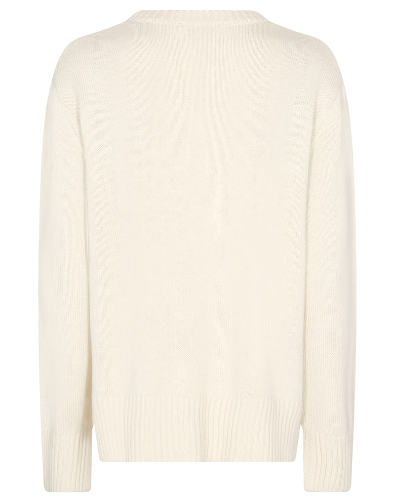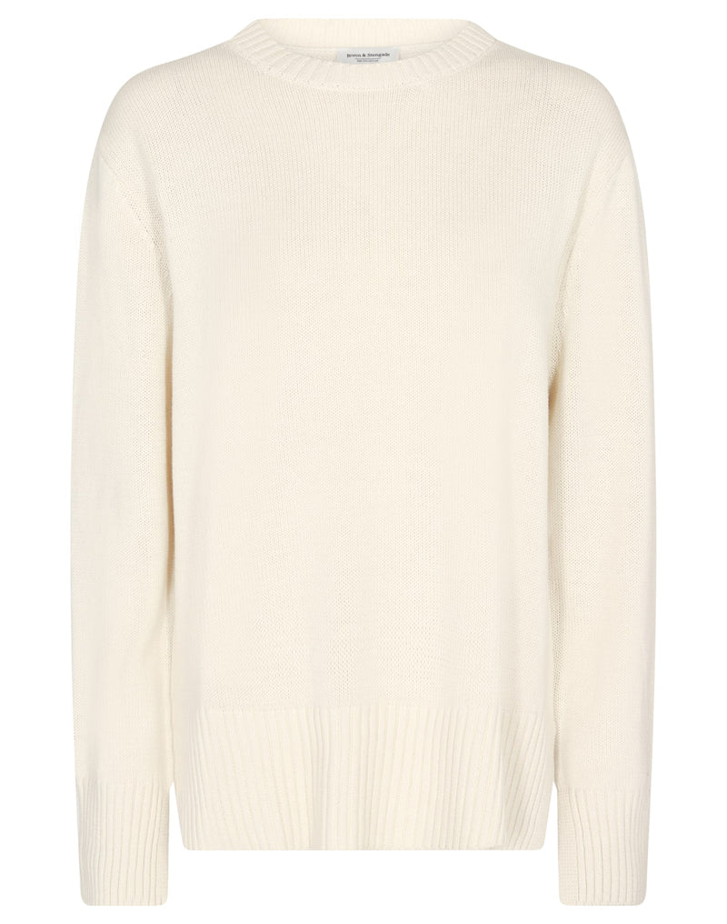 Bianca er en oversized strik lavet i en blanding af bomuld og silke. Den er designet med en kraftigere rib ved kraven, kanten og håndleddet. Derudover har den slidsdetaljer i siderne og ved håndleddet. Det er en lækker strik, som både kan fungere på arbejdet og til hyggelige stunder.