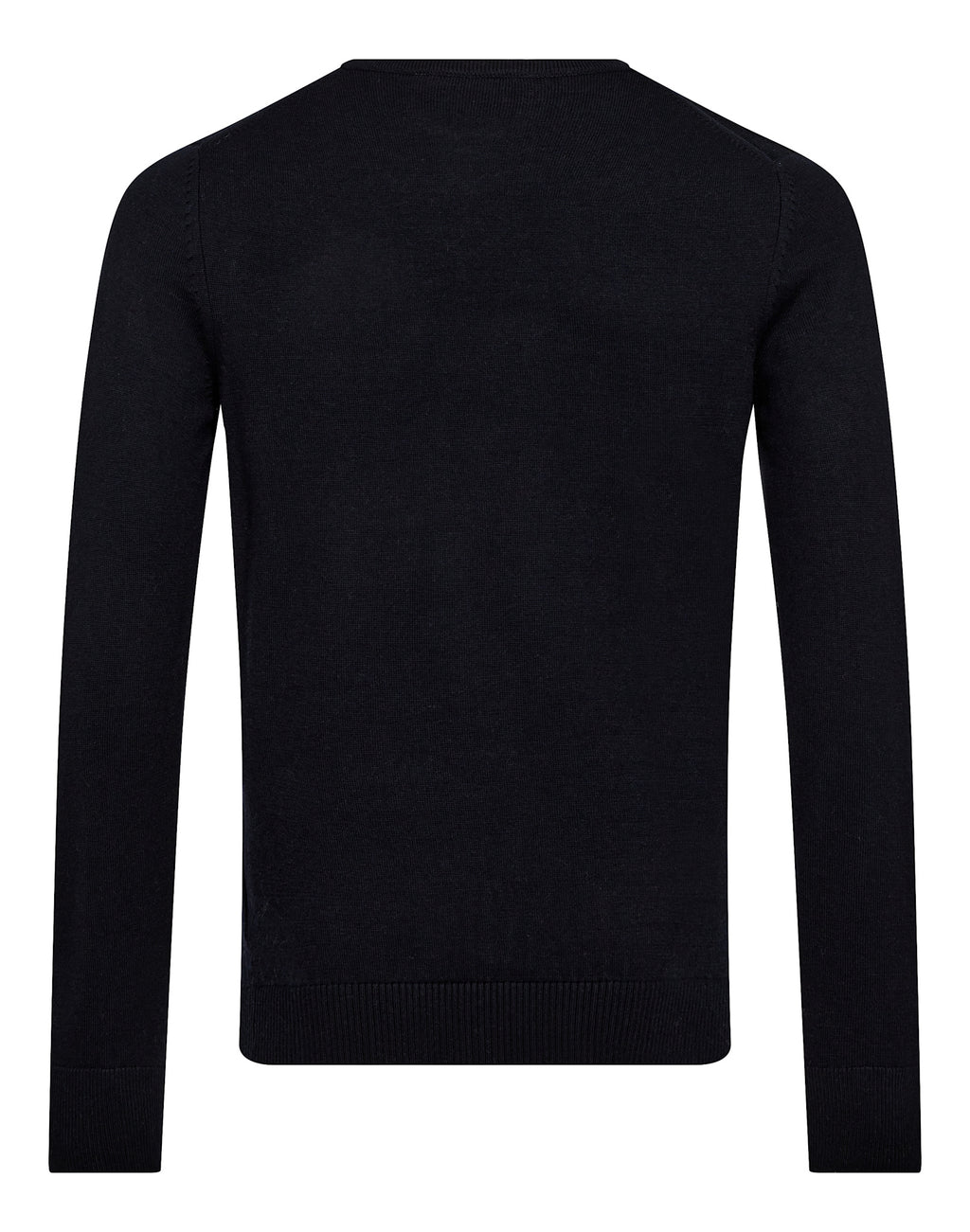 Vores bedst­sælgende O-hals strik til mænd – en tidløs klassiker, der vender tilbage sæson efter sæson. Strikket i en blød blanding af ekstrafin merinould og akryl. Detaljer som tone-i-tone logolabel på brystet og kontrastpiping i kraven giver et raffineret udtryk. Nem at style med en skjorte under eller alene.
