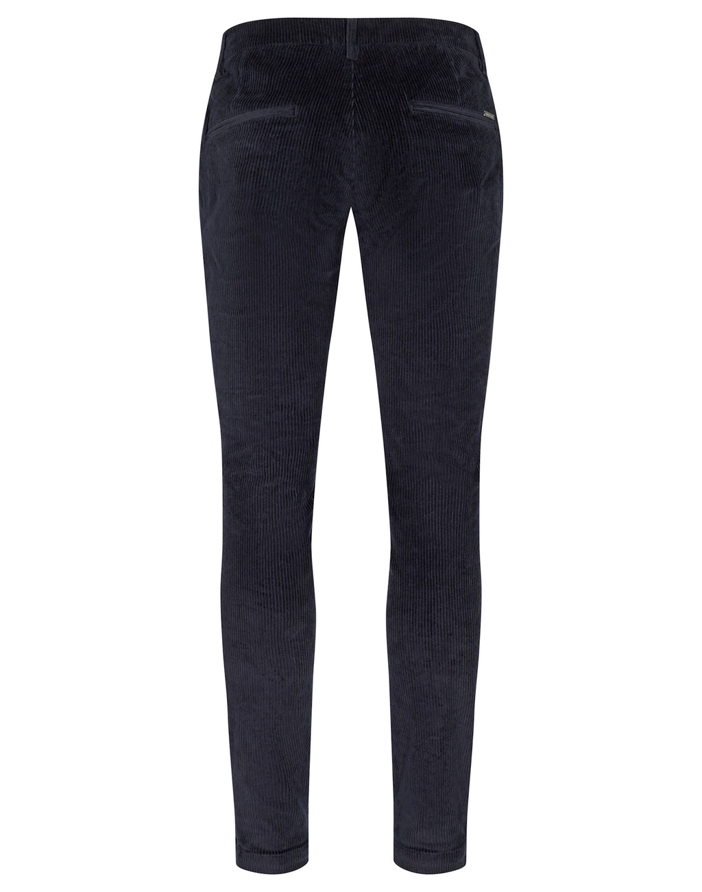 Chinos i fløjl med stretch for øget komfort. Klassisk design med skrålommer foran, dobbelt paspolerede baglommer og lynlåsgylp med knaplukning. Metaldetalje med logo over den ene baglomme.