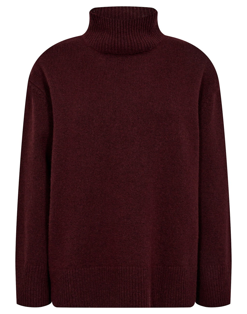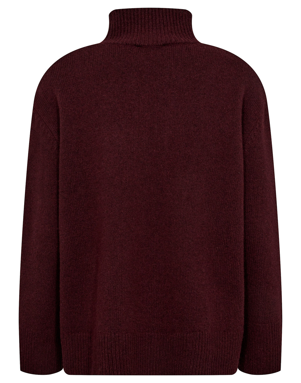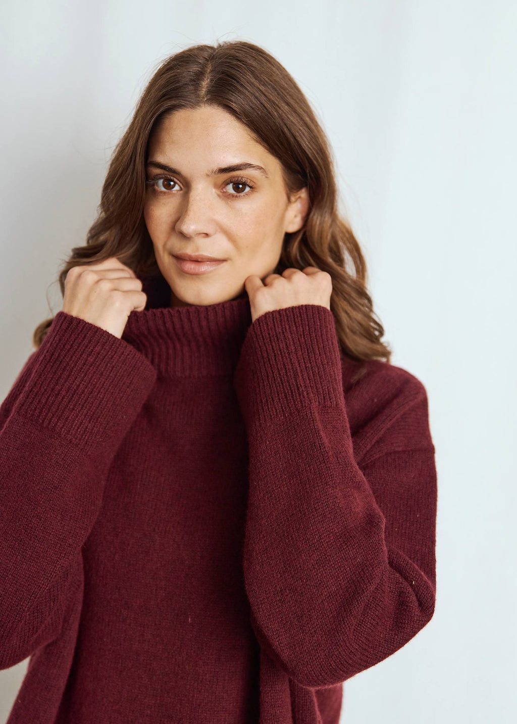 Tung, strikket sweater til kvinder i en blød blanding af merinould og bomuld. Designet med høj hals og ribdetaljer i krave, ærmekant og søm for et struktureret, afslappet look. Har et semi-oversized look.