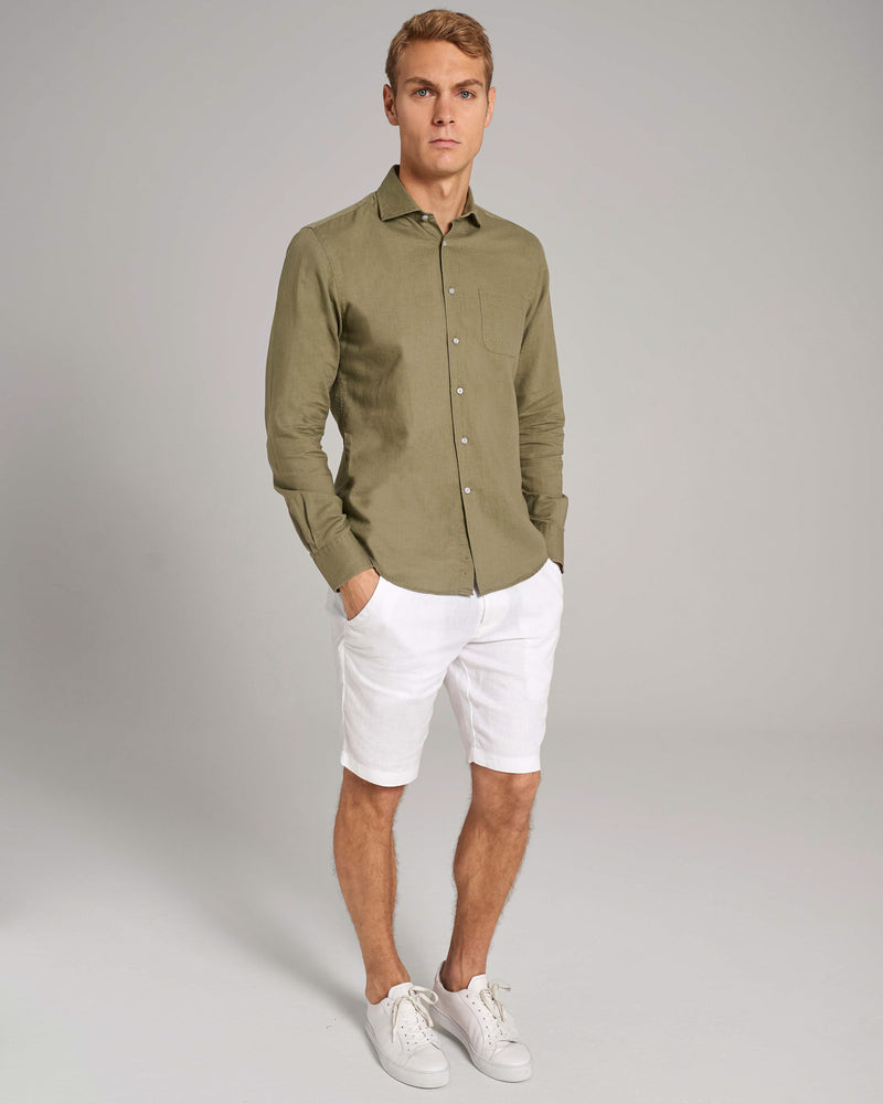 Størrelse – Modellen er 187 cm og bruger størrelse MFit – Casual Slim fitKvalitet - 55% Hør & 45% BomuldVaskeanvisninger – 30 grader maskinvask. Ingen tørretumbling